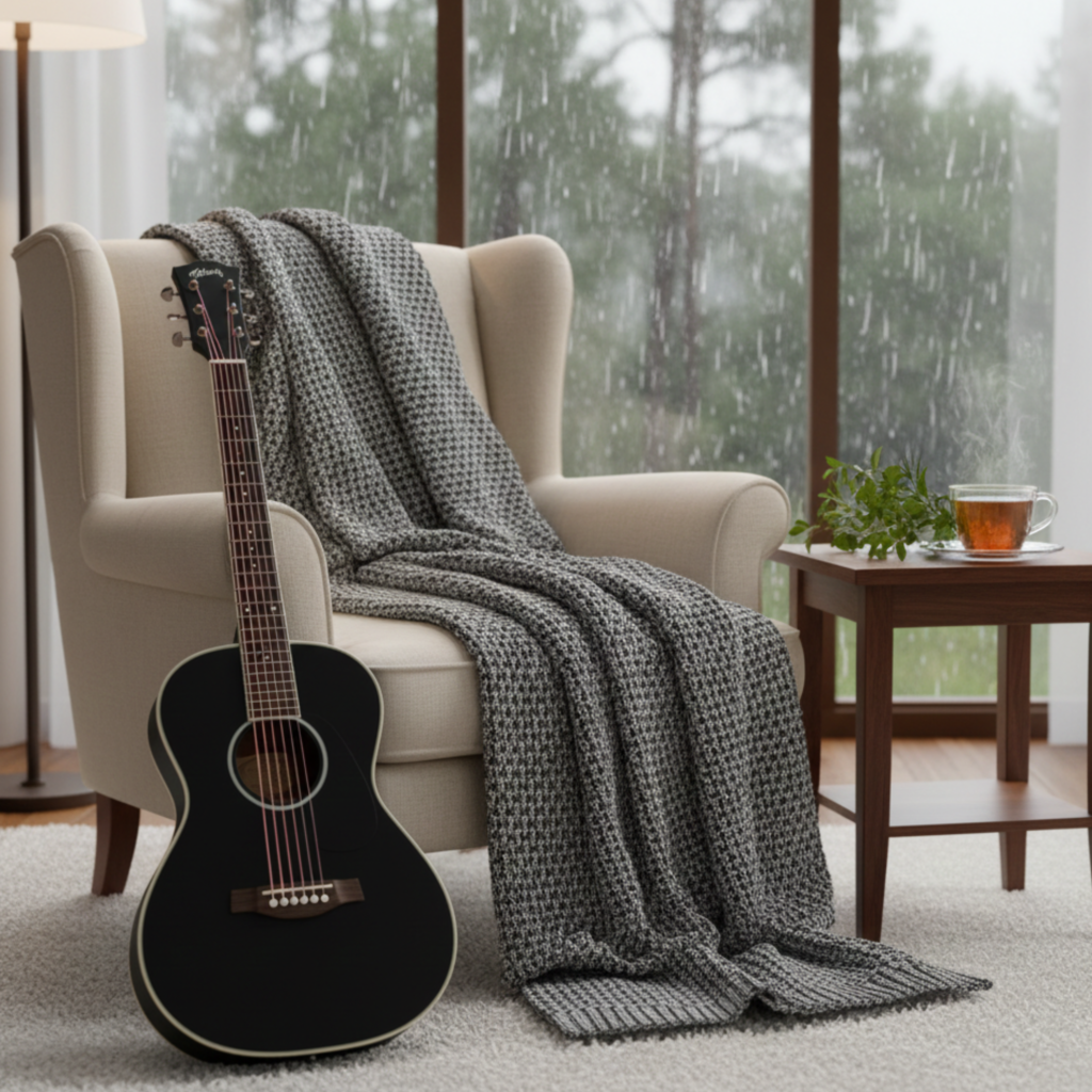 “Este é o meu canto de paz. Onde o violão descansa à espera da próxima nota e o coração se aquieta para ouvir o que o Céu tem a dizer. Um convite ao descanso que o mundo não oferece.”